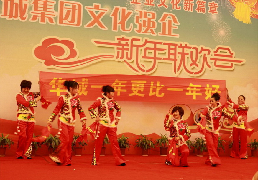 會上,員工代表首先發(fā)言。華城茂麓張學(xué)亮、華城衣歌路顧國強、華城制衣袁如意作為員工代表分別上臺發(fā)言,他們的發(fā)言代表著華城集團(tuán)五千員工的心聲,感人的語言,真切的事實,字字句句都充滿著催人奮進(jìn)的激情,從側(cè)面可以了解到華城企業(yè)在員工心目中的地位,以及企業(yè)文化建設(shè)推廣的成效。員工發(fā)言結(jié)束后,集團(tuán)董事長張祥林作了新年致辭,表達(dá)了對大家新年的祝福和誠摯的問候,并感謝大家在過去一年里所作的努力,肯定了過去所取得的成績,同時,就企業(yè)今后的發(fā)展方向、發(fā)展趨勢作了介紹和分析,明確了新一年企業(yè)的戰(zhàn)略目標(biāo)和措施,動員大家要一如既往地同心協(xié)力,要在原有的基礎(chǔ)上突破創(chuàng)新,張董的講話讓在座員工倍添動力,倍增信心,贏得了如雷般的掌聲。之后,精彩的文藝表演伴隨著豐盛的晚宴讓大家實實在在地共享了一次從物質(zhì)到精神上的饕餮大餐,集團(tuán)總部的大合唱《華城之歌》,氣勢昂揚,是華城不變的旋律,蓬勃的象征。華城茂麓選送的節(jié)目有十一組員工石高舉的獨唱“聽�!�、企劃部王建英的獨唱“最炫民族風(fēng)”,華城衣歌路選送的節(jié)目有員工簡娜娜等四人表演的舞蹈“日不落”、朱建明的獨唱“一個美麗的傳說”,三廠選送的節(jié)目有裁剪車間主任顧洪川的獨唱“草原之夜”、三車間楊平英等人表演的舞蹈“越來越好”,還有圣雷克選送的“電腦機械舞”,這些精彩的節(jié)目令大家目不暇接,現(xiàn)場不斷響起熱烈的掌聲,給晚會增添了熱鬧的氣氛和無限的魅力。