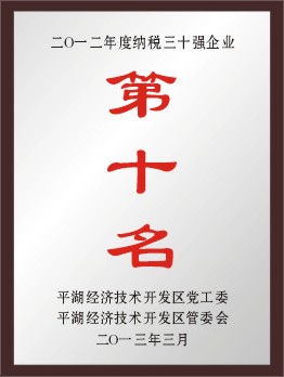 平湖市華城制衣有限公司榮獲平湖經(jīng)濟技術(shù)開發(fā)區(qū)二0一二年度納稅三十強企業(yè)第十二名;