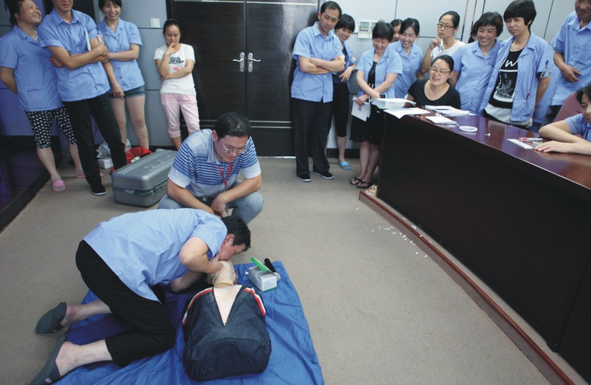 “當(dāng)遇到突發(fā)事件時(shí),時(shí)間就是生命。”培訓(xùn)課上,馬老師有關(guān)緊急救護(hù)的重要意義給大家再次闡述,生活中各種突發(fā)事件時(shí)有出現(xiàn),及時(shí)的救助、正確的救護(hù)知識(shí)和操作流程將會(huì)大大提高搶救成功率,減少人員傷亡。學(xué)會(huì)緊急救援,也許就可以挽救一個(gè)生命,進(jìn)而挽救一個(gè)家庭,意義深遠(yuǎn)。這次培訓(xùn)課,馬老師應(yīng)用了浙江省紅十字應(yīng)急救護(hù)培訓(xùn)標(biāo)準(zhǔn)新課件,并根據(jù)華城員工工作性質(zhì)和特點(diǎn),開展了有針對性的培訓(xùn),包括身體各部位出血的緊急止血和包扎方式,重點(diǎn)講解了現(xiàn)代應(yīng)急救護(hù)的新模式、心肺復(fù)蘇術(shù)等,最后馬老師現(xiàn)場演示了心肺復(fù)蘇操作,并指導(dǎo)員工親自操作實(shí)踐,突出重點(diǎn),掌握要點(diǎn)。員工們都學(xué)得相當(dāng)認(rèn)真,培訓(xùn)結(jié)束之后,學(xué)員們進(jìn)行了理論和操作考試。