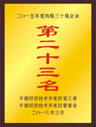 平湖華城衣歌路服飾有限公司榮獲平湖經(jīng)濟(jì)技術(shù)開發(fā)區(qū)二0一五年度納稅三十強(qiáng)企業(yè)第二十三名;