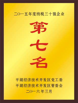 平湖華城茂麓制衣有限公司榮獲平湖經(jīng)濟(jì)技術(shù)開發(fā)區(qū)二0一五年度納稅三十強(qiáng)企業(yè)第七名;