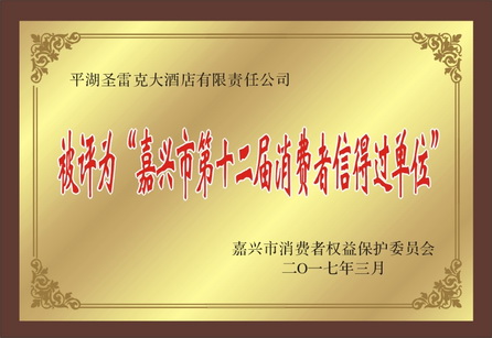 平湖圣雷克大酒店榮獲“嘉興市第十二屆消費(fèi)者信得過單位”等榮譽(yù)稱號(hào)