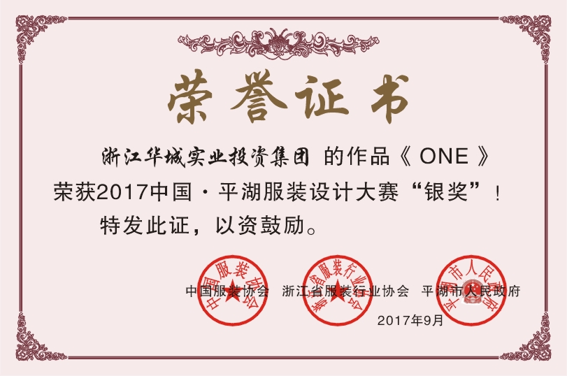 9月27日晚上,2017中國•平湖服裝設(shè)計(jì)大賽總決賽在市體育館隆重舉行。今年的服裝設(shè)計(jì)大賽與往年相比增加了很多亮點(diǎn),特別是它已經(jīng)由省級大賽升級為國內(nèi)專業(yè)性極強(qiáng)的國家級大賽。大賽由中國服裝協(xié)會(huì)、浙江省服裝行業(yè)協(xié)會(huì)、平湖市人民政府主辦,出席大賽的有中國服裝協(xié)會(huì)專職副會(huì)長楊金純,平湖市領(lǐng)導(dǎo)仲旭東、蔣娟芬、方向明、錢勇彪、俞明祥等。本次設(shè)計(jì)大賽以“聚合•共贏”為主題,共設(shè)金獎(jiǎng)一名,銀獎(jiǎng)兩名,銅獎(jiǎng)三名。我公司選送的參賽作品“ONE” 從35組通過層層選拔的決賽作品中脫穎而出,獲得了此次大賽的銀獎(jiǎng)。