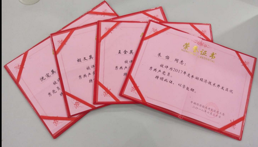 來源: 發(fā)布時間:2018-07-14 被閱讀:3173 火紅的七月,激情燃燒,鮮艷的黨旗,迎風(fēng)飄揚(yáng)。每一個黨的生日,我們都熱烈慶祝。6月30日上午,在平湖經(jīng)濟(jì)技術(shù)開發(fā)區(qū)(鐘埭街道)慶祝中國共產(chǎn)黨成立97周年表彰大會上,我集團(tuán)公司下屬華城茂麓員工王金英、華城衣歌路公司員工朱怡、華城制衣員工胡文英榮獲“二0一七年度平湖經(jīng)濟(jì)技術(shù)開發(fā)區(qū)優(yōu)秀共產(chǎn)黨員”光榮稱號, 華城制衣員工沈?qū)櫽s獲“二0一七年度平湖經(jīng)濟(jì)技術(shù)開發(fā)區(qū)優(yōu)秀黨員志愿者”光榮稱號。