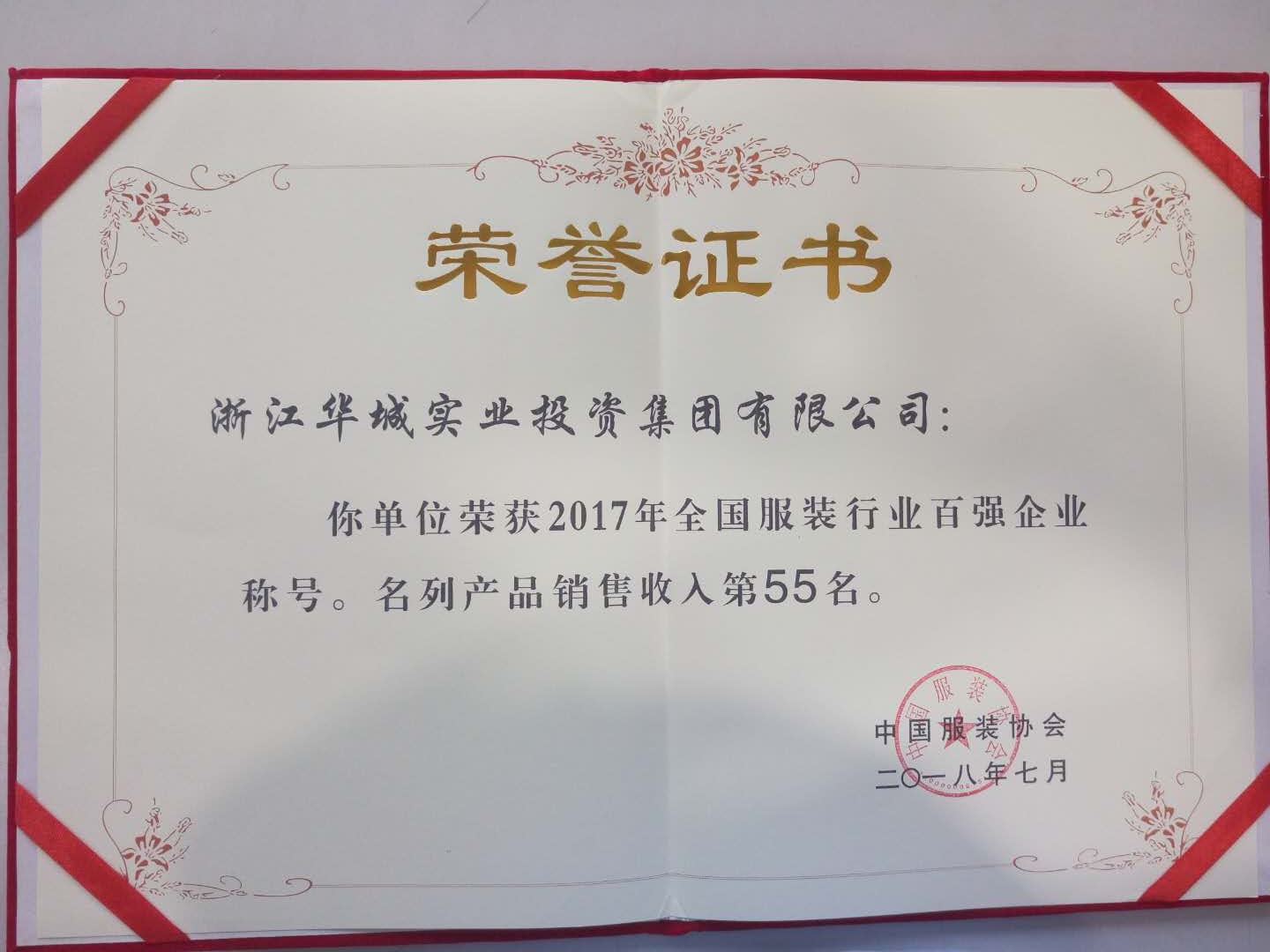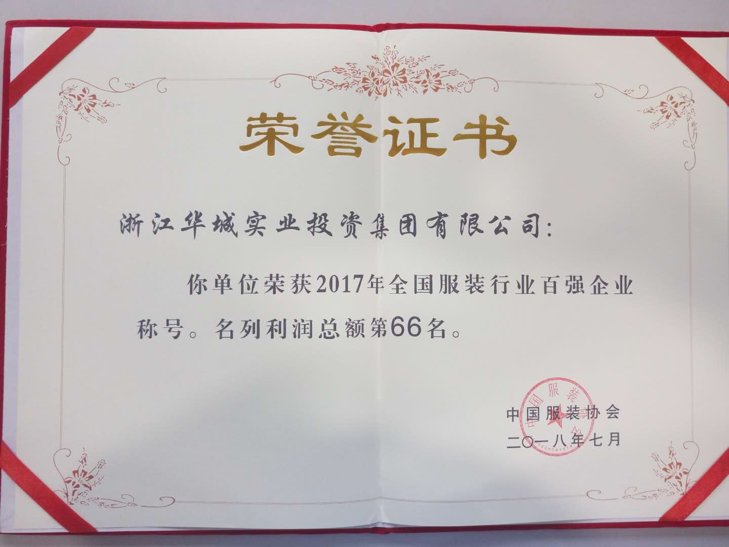 熱烈祝賀華城集團再次榮獲“全國服裝行業(yè)百強企業(yè)”稱號