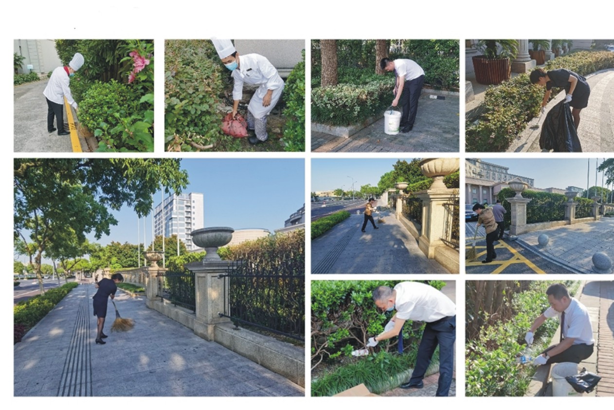 9月5日上午,酒店組織中高層管理人員及員工30多人,對酒店外圍環(huán)境及停車場環(huán)境進(jìn)行衛(wèi)生大整治。