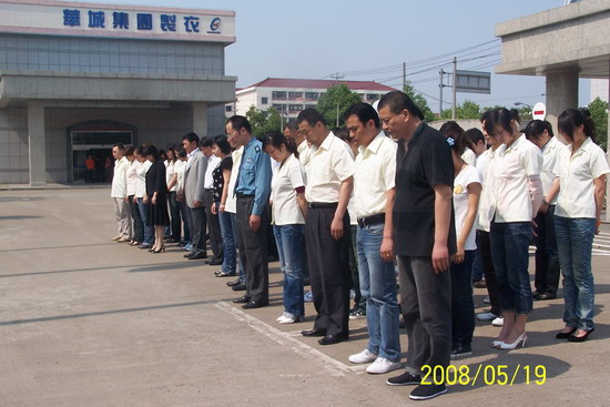 國旗低垂,汽笛長鳴,山河齊悲,舉國同哀。5月19日14:28,在這全國哀悼汶川死難者的肅穆時刻,平湖市常務(wù)副市長石云良、市政協(xié)主席陸致遠與華城員工一起在華城大樓前廣場,面對降半旗的五星紅旗,朝著四川災(zāi)區(qū)方向,默哀3分鐘。