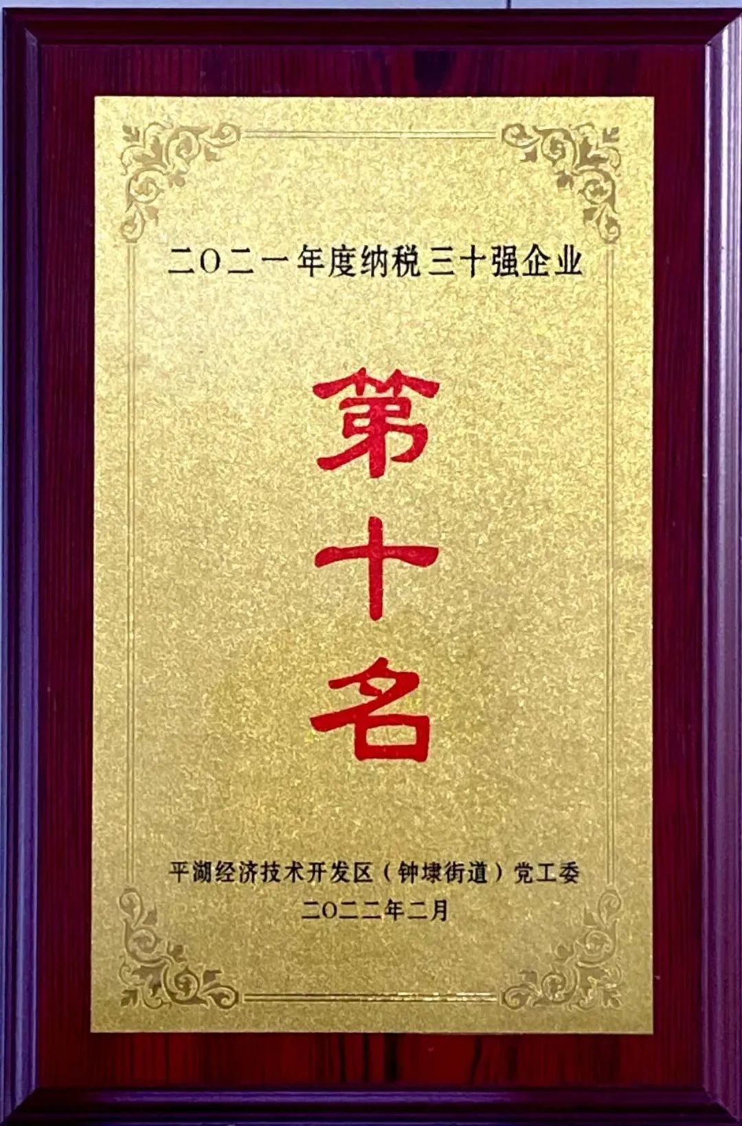 位列2021年度納稅30強(qiáng)企業(yè)第10名。