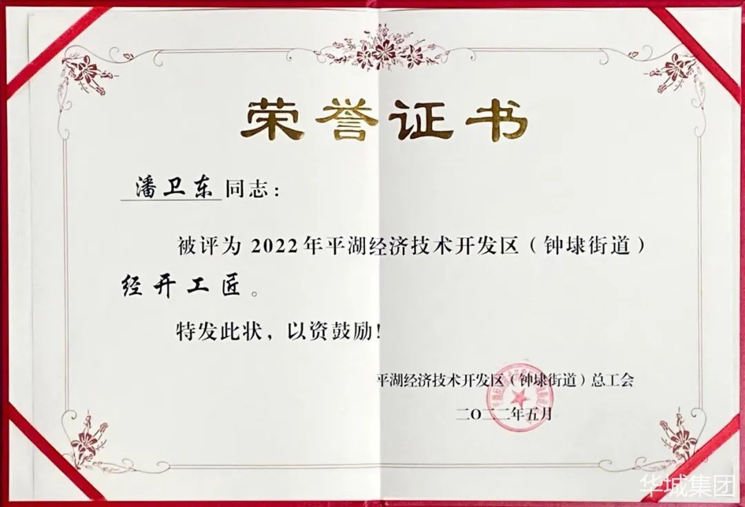 平湖華城茂麓制衣有限公司員工潘衛(wèi)東榮獲“經開工匠”稱號。
