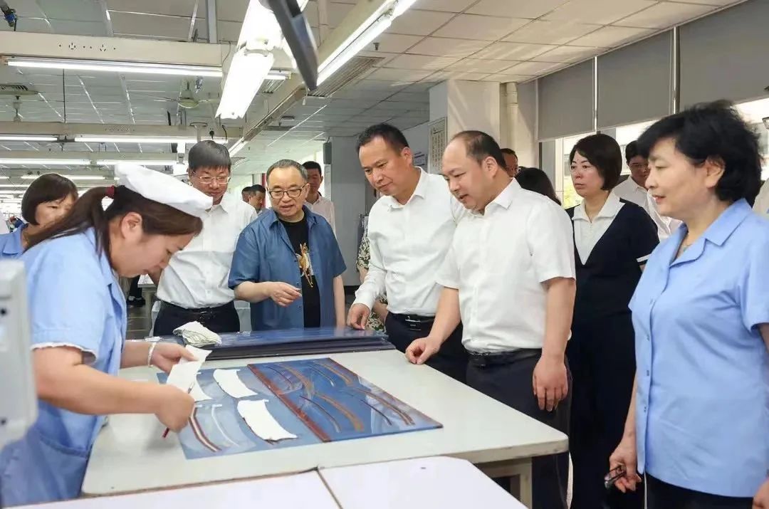 華城集團(tuán)董事長(zhǎng)張祥林率總經(jīng)理沈躍維、潘彩紅等高層管理接待考察團(tuán),并陪同考察團(tuán)參觀華城制衣生產(chǎn)車間�?疾靾F(tuán)一行在現(xiàn)場(chǎng)感受了一次“沉浸式體驗(yàn)”,雙方還就如何推動(dòng)紡織服裝產(chǎn)業(yè)發(fā)展進(jìn)行了溝通交流�?疾靾F(tuán)在詳細(xì)了解了華城集團(tuán)及平湖服裝產(chǎn)業(yè)的發(fā)展、現(xiàn)狀等情況后表示,華城集團(tuán)的行業(yè)地位及對(duì)行業(yè)的突出貢獻(xiàn)值得肯定和贊揚(yáng),平湖服裝產(chǎn)業(yè)的轉(zhuǎn)型發(fā)展經(jīng)驗(yàn)值得學(xué)習(xí)和借鑒。