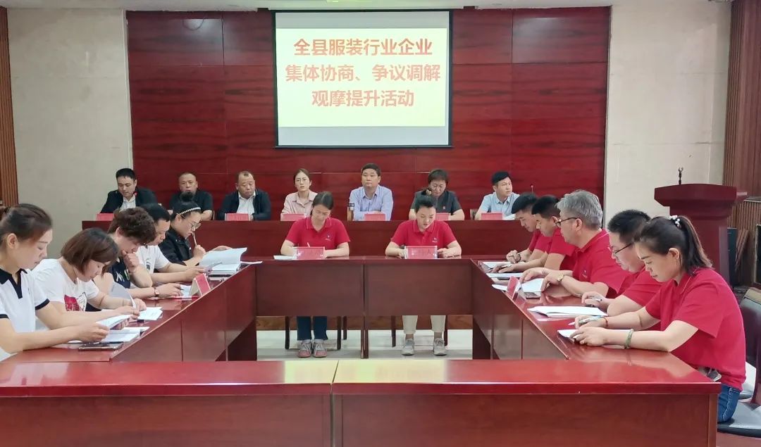 當前位置:首頁 > 華城動態(tài)5月30日,縣服裝行業(yè)企業(yè)勞動關系集體協(xié)商、爭議調解觀摩提升活動在濟寧華城百靈服飾有限公司成功舉辦。活動由縣人社局、服裝商會和濟寧華城百靈服飾有限公司聯(lián)合舉辦,縣總工會、法院、司法局、南站街道有關負責同志、16家服裝企業(yè)代表、服裝商會協(xié)調勞動關系工作站成員、濟寧華城百靈服飾有限公司職工參加活動。
