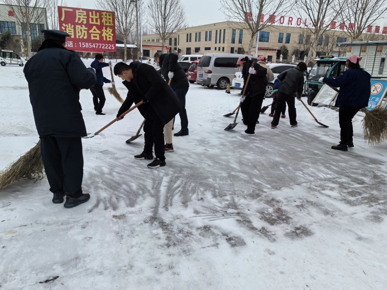 雪天踐使命,擔(dān)當(dāng)暖寒冬。在大家的共同努力下,積雪得到了有效清除。