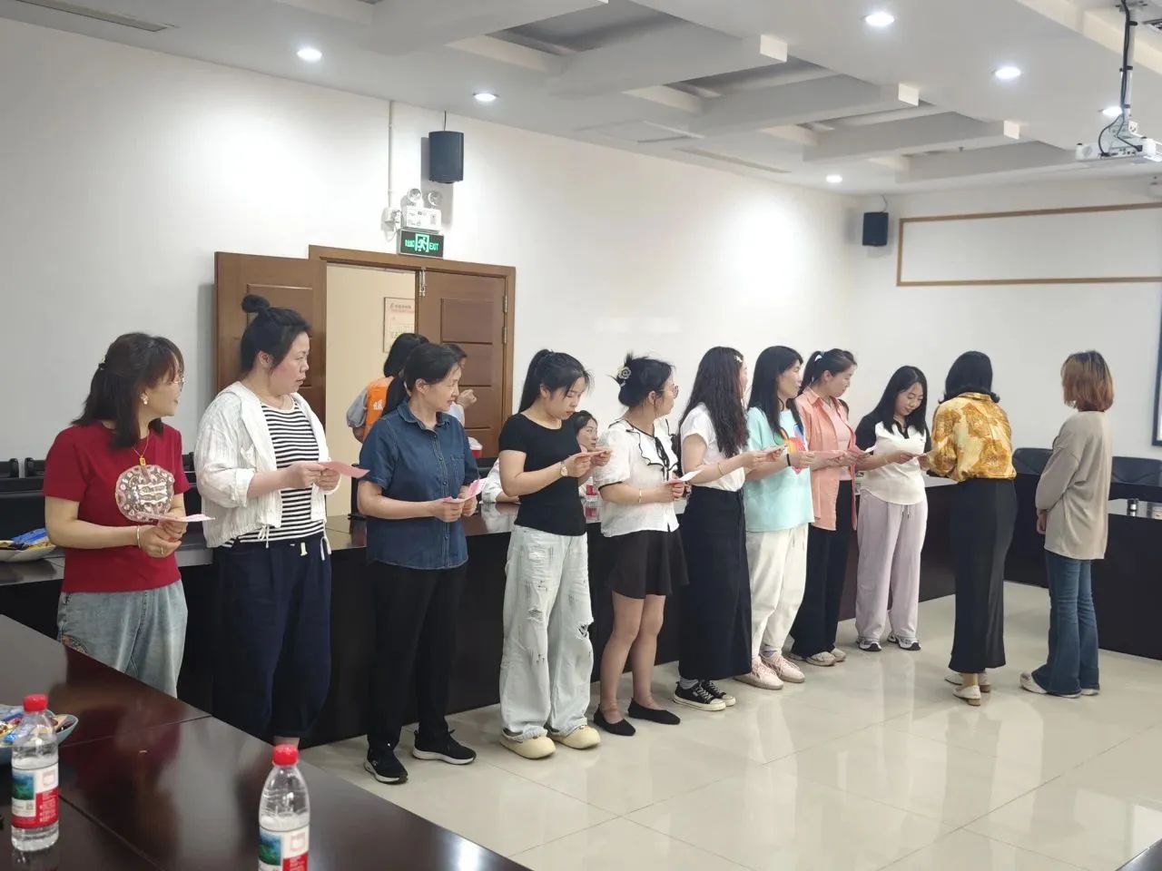 在精彩的講座結(jié)束之后,緊接著是一場沉浸于古典韻味的“非遺壓襟”體驗(yàn)活動,讓企業(yè)員工們仿佛穿越回古代,領(lǐng)略傳統(tǒng)文化的非凡魅力�;顒右潦�,佳子老師向員工們深入講解了“壓襟”這一非物質(zhì)文化遺產(chǎn)的起源和制作特色。在制作中,通過佳子老師的悉心指導(dǎo),大家從選擇材料的順序、構(gòu)思設(shè)計(jì)到組裝,每一步都充滿了樂趣和挑戰(zhàn)。