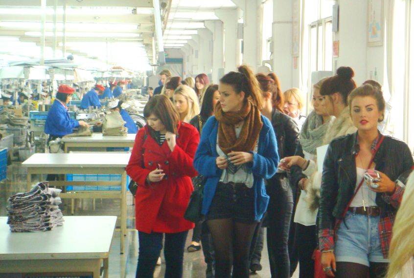 中午十二點半,外國學(xué)生們由五位老師帶隊來到華城集團總部,通過在會議室系統(tǒng)地觀看企業(yè)介紹、學(xué)習(xí)華城文化逐步了解公司概況,隨后在現(xiàn)場翻譯華城制衣業(yè)務(wù)部范金平的帶領(lǐng)下,外國學(xué)生們參觀了制衣各生產(chǎn)車間,在參觀過程中,范金平同時向他們介紹了企業(yè)發(fā)展的現(xiàn)狀及前景,并就企業(yè)文化在企業(yè)發(fā)展中的作用做了初步介紹,共同探討了生產(chǎn)過程中完善服裝生產(chǎn)工序及管理模式給企業(yè)帶來的效益。通過現(xiàn)場觀摩和講解,讓外國學(xué)生對華城“以人為本”的管理模式、先進的生產(chǎn)設(shè)備、科學(xué)的生產(chǎn)流程安排以及良好的工作環(huán)境贊不絕口。