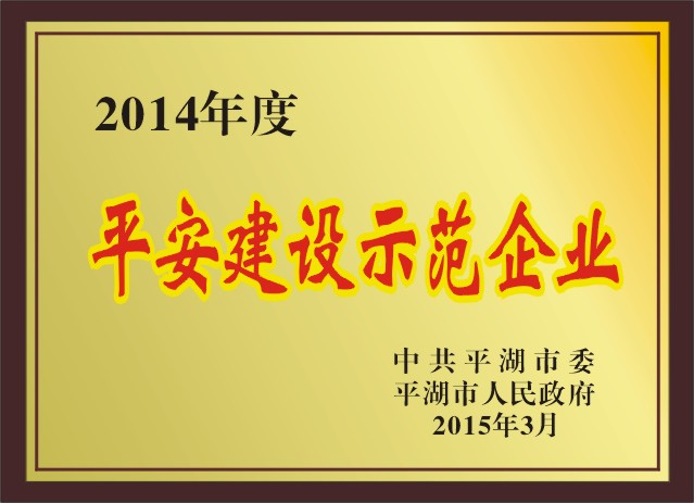 我公司被平湖市人民政府授予“2014年度平安建設(shè)示范企業(yè)”光榮稱號