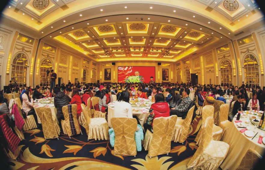 中午十一點,來自華城衣歌路的劉立業(yè)和華城制衣的馬冰妍含笑登臺,作為本次聯(lián)歡會的主持人,他們以精彩的開場白拉開了聯(lián)歡會的序幕。之后,員工代表一一上場,華城茂麓趙芳賢、華城衣歌路李小玉、華城制衣陶亞麗、平湖圣雷克大酒店楊燕這四位員工聲情并茂的發(fā)言,集中體現(xiàn)了我們?nèi)A城優(yōu)秀企業(yè)文化在企業(yè)建設(shè)中起到的重要作用,說出了華城集團5000員工的心聲,企業(yè)文化已經(jīng)成了華城員工成長不可缺少的精神食糧。繼員工代表發(fā)言之后,張董上臺講話,在肯定了過去所取得成績的同時,張董對未來的發(fā)展寄予了深切的希望,動員大家要一如既往地同心協(xié)力,讓更多的員工參與到企業(yè)文化建設(shè)中來。最后,文藝表演在午宴時華麗開場。一道道精致的菜品,一個個喜慶的節(jié)目,完美的溝通,熱烈的互動,讓聯(lián)歡會更接地氣,更貼人心,更富特色,圣湖廳成了歡樂的海洋。