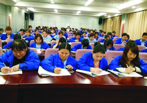 來源: 發(fā)布時間:2016-07-30 被閱讀:2556 4 月19日,在辦公大樓四樓一號會議室內(nèi),華城制衣52名員工興高采烈地從平湖職業(yè)中專老師那里接過了“二級服裝制作工”榮譽證書,發(fā)證單位是中國紡織工業(yè)聯(lián)合會,這是華城制衣今年第一批榮獲此項榮譽的員工。發(fā)證結(jié)束后,新一期服裝高級工培訓班正式開始,華城制衣縫制車間各小組186人參加了此次培訓,平湖職業(yè)高中姚玲英老師為大家認真、仔細地講解了有關(guān)內(nèi)容,員工們都聽得津津有味、學得認認真真,不難看出此次培訓又一次極大地滿足了大家的求知欲。