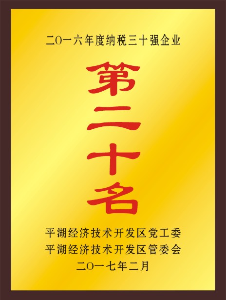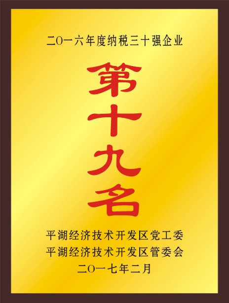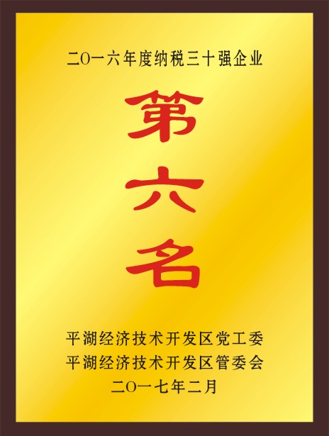 平湖華城衣歌路服飾有限公司榮獲平湖經(jīng)濟(jì)技術(shù)開發(fā)區(qū)二0一六年度納稅三十強(qiáng)企業(yè)第十九名;