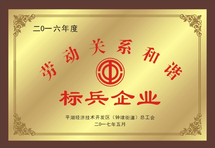 我集團公司下屬平湖華城茂麓制衣有限公司被授予 “2016年度勞動關(guān)系和諧標兵企業(yè)”榮譽稱號;
