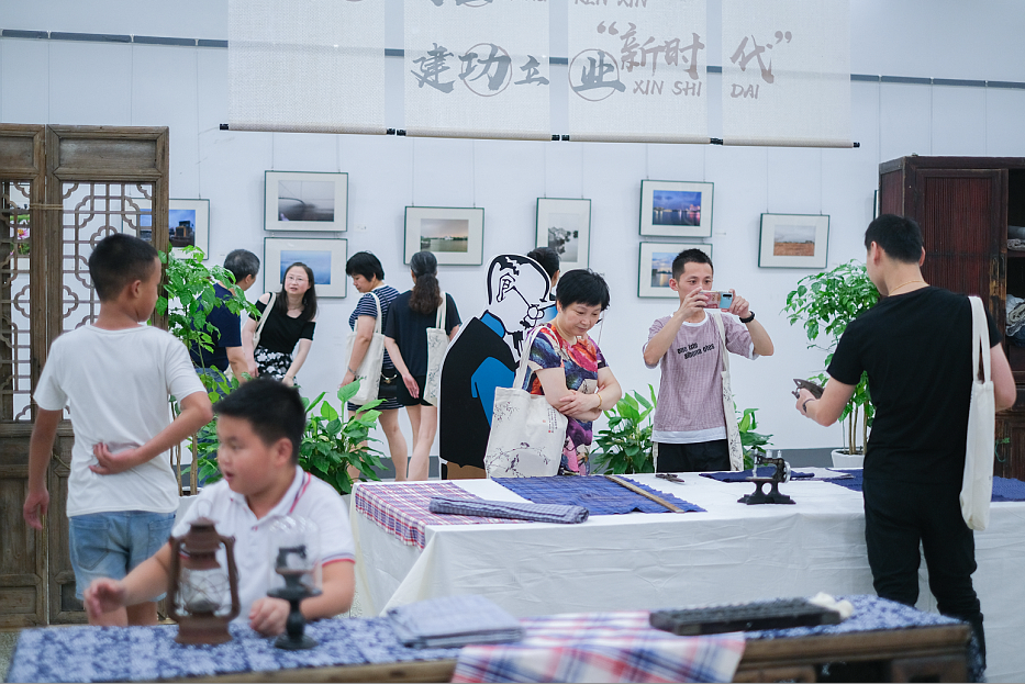 此次攝影展為沉浸式展覽,運(yùn)用紡織服裝老物件,營造了老裁縫店的場景,極具年代感,參觀者仿佛置身于真實(shí)的老裁縫店內(nèi),可以量體裁衣、挑選布匹、坐在老式縫紉機(jī)上拍照打卡等,特別的展示方式和互動體驗帶給觀眾不一樣的感官享受。