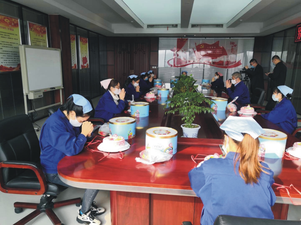 “因為受疫情影響,沒想到公司還能給我們過生日,我們感到很幸福、很自豪,我們一定牢記疫情防控安全知識,為企業(yè)發(fā)展多作貢獻!”這是濟寧華城百靈服飾有限公司舉辦的“別樣三八節(jié),健康永相伴”職工集體生日會上職工王燕利的肺腑之言。