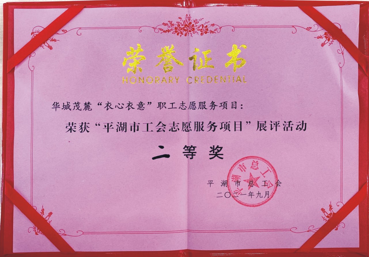 此次志愿服務(wù)項(xiàng)目喜獲“平湖市工會(huì)志愿服務(wù)項(xiàng)目”展評(píng)活動(dòng)二等獎(jiǎng),給予了我們志愿服務(wù)隊(duì)極大的肯定及動(dòng)力�!耙滦囊乱狻甭毠ぶ驹阜⻊�(wù)隊(duì)將會(huì)在工會(huì)的指引下,以更強(qiáng)擔(dān)當(dāng)參與志愿服務(wù),打造具有美譽(yù)度、辨識(shí)度的工會(huì)志愿服務(wù)品牌,讓志愿精神在華城“熠熠生輝”。