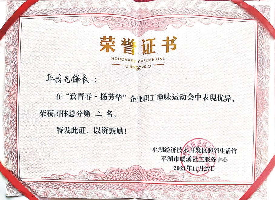 為慶祝中國共產(chǎn)黨成立100周年,充分展現(xiàn)企業(yè)員工良好的精神風貌和健康生活理念,共同營造積極向上、充滿活力的工作氛圍,豐富員工文體生活,培養(yǎng)員工敢于挑戰(zhàn)的拼搏精神和精誠合作的團隊精神,切實增強員工的凝聚力和戰(zhàn)斗力,平湖市經(jīng)濟技術開發(fā)區(qū)睦鄰館于11月27日在睦鄰館舉辦“致青春•揚芳華”經(jīng)開企業(yè)職工趣味運動會。我公司由10位員工組成的兩個參賽隊“華城先鋒隊”和“華城突擊隊”參加了此次趣味運動會。