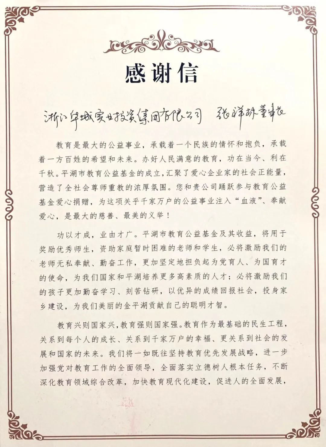 希望公益教育基金的深情召喚、首批捐贈愛心企業(yè)的實際行動,能帶動更多的企業(yè)投入到愛心捐贈中來,匯聚愛心企業(yè)家的社會正能量,營造全社會尊師重教氛圍,奮力打造教育共富平湖樣本。