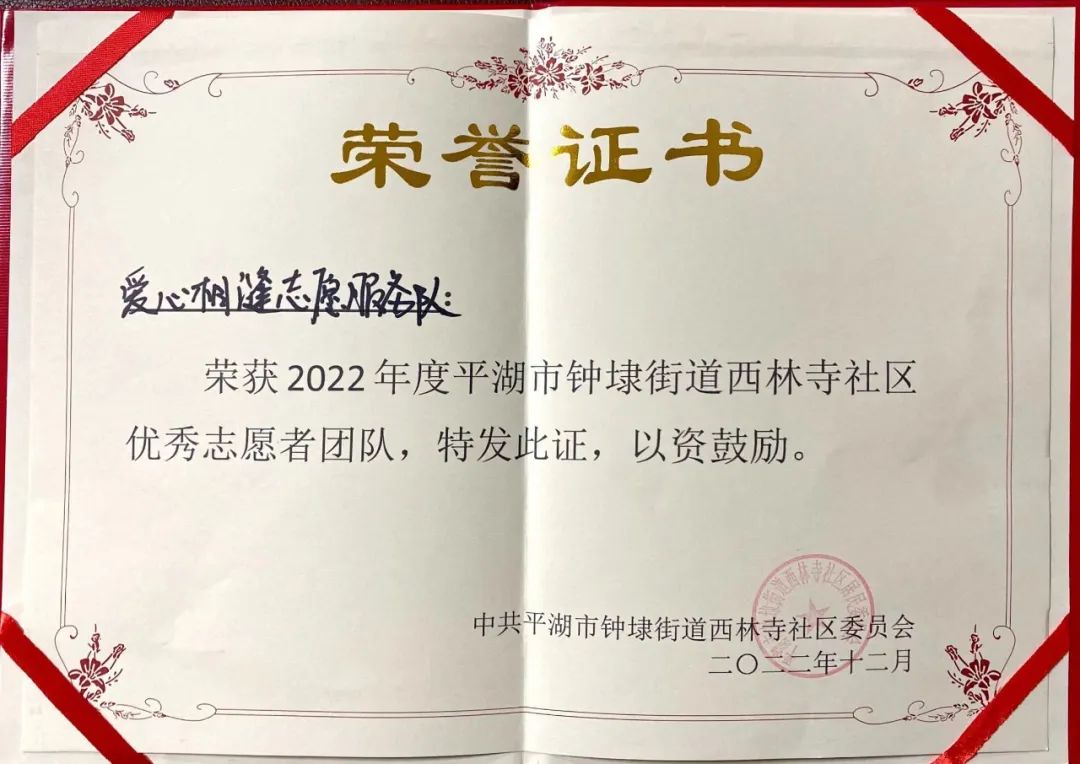 當(dāng)前位置:首頁 > 華城動(dòng)態(tài)12月5日上午,在西林寺社區(qū)開展的“弘揚(yáng)全民志愿風(fēng)采,共建共富志愿之城”國際志愿者日慶祝會上,華城集團(tuán)愛心相縫志愿隊(duì)獲得社區(qū)頒發(fā)的優(yōu)秀志愿者團(tuán)隊(duì)榮譽(yù)。