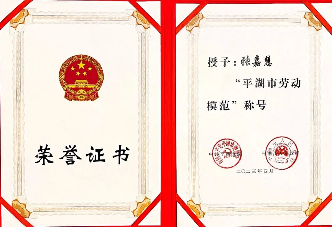 當前位置:首頁 > 華城動態(tài)向勞模致敬,為先進點贊。4月28日上午,平湖市慶祝“五一”國際勞動節(jié)暨勞動模范和先進集體頒獎儀式隆重舉行。會上,表彰了2018-2022年全市各行各業(yè)涌現(xiàn)出的勞動模范和先進集體。我公司董事長助理張嘉慧被授予“平湖市勞動模范”榮譽稱號。