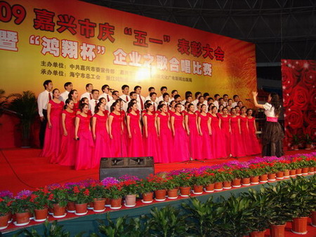 為進(jìn)一步深入開(kāi)展嘉興市企業(yè)職工文化建設(shè)示范工程活動(dòng),扎實(shí)推進(jìn)全市企業(yè)職工文化建設(shè),助推全市經(jīng)濟(jì)轉(zhuǎn)型升級(jí)創(chuàng)新發(fā)展,經(jīng)嘉興市委宣傳部、市總工會(huì)、市文廣局研究決定,嘉興市企業(yè)歌曲征集評(píng)選活動(dòng)和“鴻翔杯”企業(yè)之歌合唱比賽于2009年4月28日在海寧市體育中心舉行。我公司《華城之歌》合唱團(tuán)通過(guò)各隊(duì)員的共同努力,克服在排練過(guò)程中的種種困難,在比賽現(xiàn)場(chǎng)發(fā)揮出優(yōu)異的成績(jī),所唱的《華城之歌》和《解放區(qū)的天》二首歌曲受到了現(xiàn)場(chǎng)觀眾的陣陣掌聲和評(píng)委的肯定,在此次比賽中獲得第一名。企業(yè)歌曲是體現(xiàn)企業(yè)文化和職工文化的重要載體,通過(guò)廣泛傳唱企業(yè)歌曲,展示企業(yè)形象,凝聚職工力量。這次《華城之歌》第一次在嘉興市級(jí)比賽中開(kāi)唱就受到大家的好評(píng),也是反映了我們?nèi)A城人的精神面貌,同時(shí)也展現(xiàn)了我們?nèi)A城集團(tuán)的企業(yè)形象。