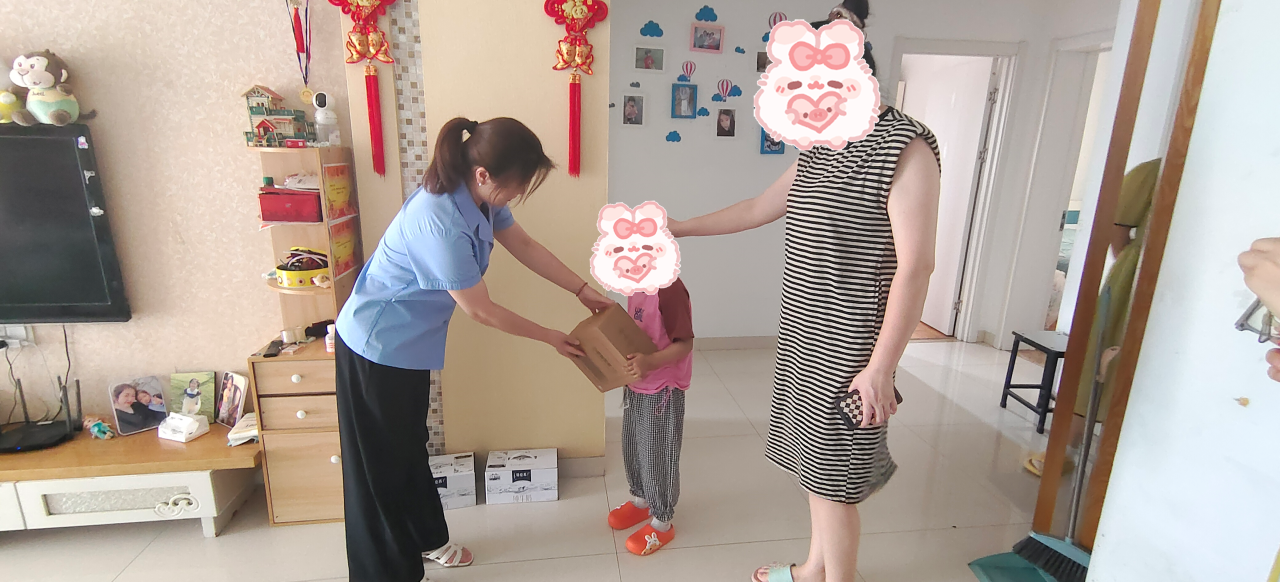 第一站,西林寺翡翠花苑低保家庭小劉家里。才五歲的小劉,已身患重病。低保家庭的拮據(jù)生活,讓她的家人舍不得給她買心儀的小度智能屏。當(dāng)她捧著剛收到的禮物小度智能屏?xí)r,那么的驚喜開心,小臉蛋上充滿喜悅。社區(qū)與企業(yè)的關(guān)心,讓小劉的家人有更多的力量,與病魔戰(zhàn)斗。