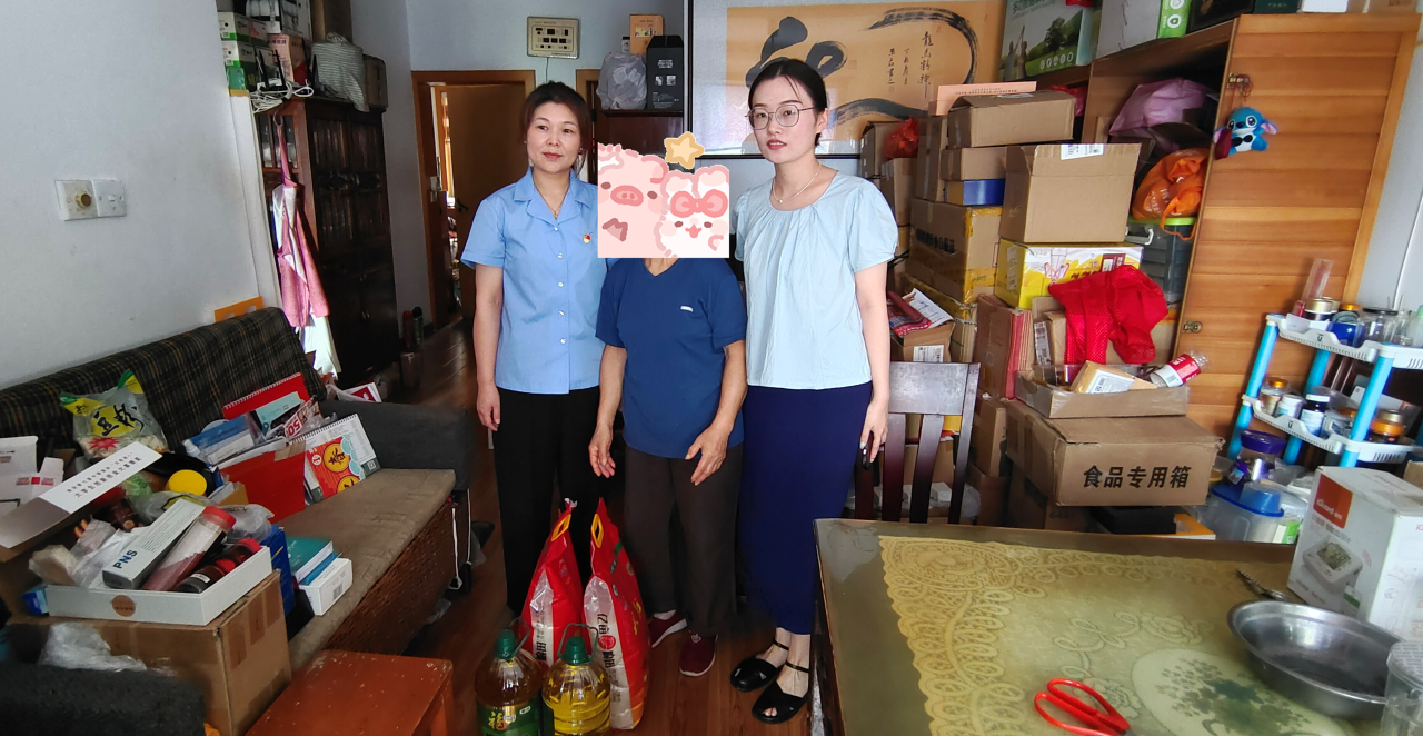 最后一站,西林寺東區(qū)孤老熊女士家里。熊女士丈夫今年去世,領(lǐng)養(yǎng)的兒子是殘疾人,是社區(qū)比較關(guān)注的特殊群體之一。當(dāng)看到社區(qū)和企業(yè)送上門來的油和米,熊女士非常感動,這也極大地增加了她對生活的樂觀心情。