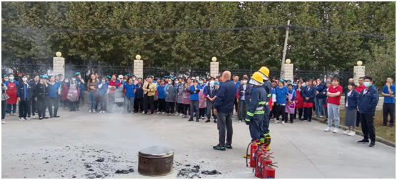 所有人員在辦公樓前集合,各車間、班組清點(diǎn)人數(shù)。企管李偉偉進(jìn)行消防安全知識講解,如何預(yù)防火災(zāi)、撲救初起火災(zāi),面對突發(fā)事件的自救、他救能力,如何正確使用滅火器等注意事項,然后員工進(jìn)行滅火實際操作。
