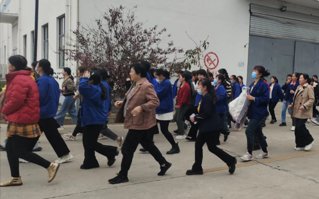 隨著一陣急促的警報聲響起,疏散演練正式開始。全體員工按照演練預案開展了火場逃生演習。同事們紛紛掩住口鼻,壓低姿勢彎著腰,安全、快速、有序地逃出生產車間,到達指定的安全地點。