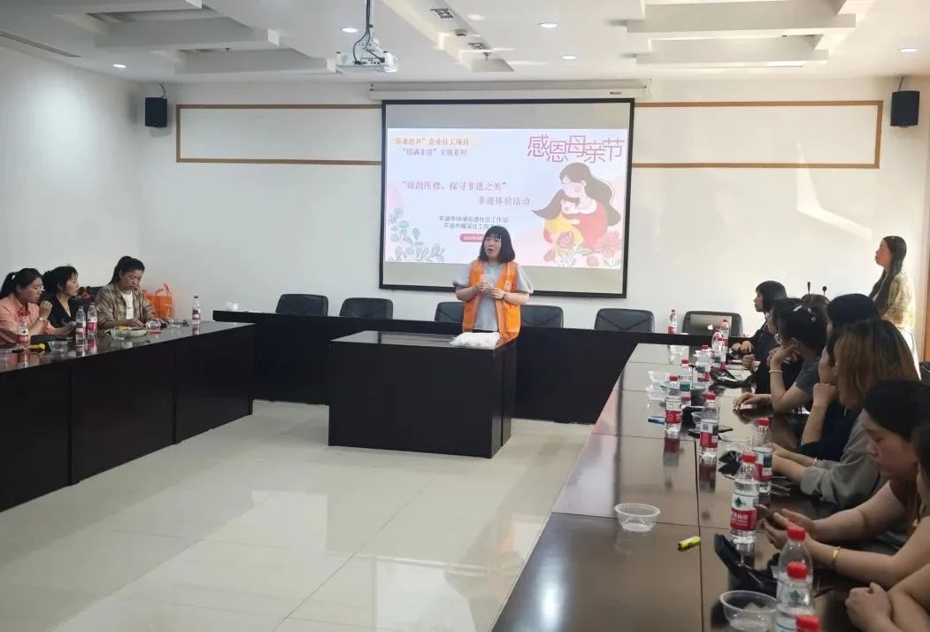 當前位置:首頁 > 華城動態(tài)5月11日,平湖市鐘埭街道社會工作站在華城衣歌路組織開展“以愛為舟,照亮心途”家庭教育講座及“錦韻壓襟,探尋非遺之美”非遺體驗。本次母親節(jié)活動分為兩個環(huán)節(jié)進行:家庭教育講座及非遺壓襟體驗活動,分別邀請家庭教育高級指導師、正面管教家長講師周美麗老師及嘉興市美協(xié)會員佳子老師為企業(yè)職工進行活動指導。