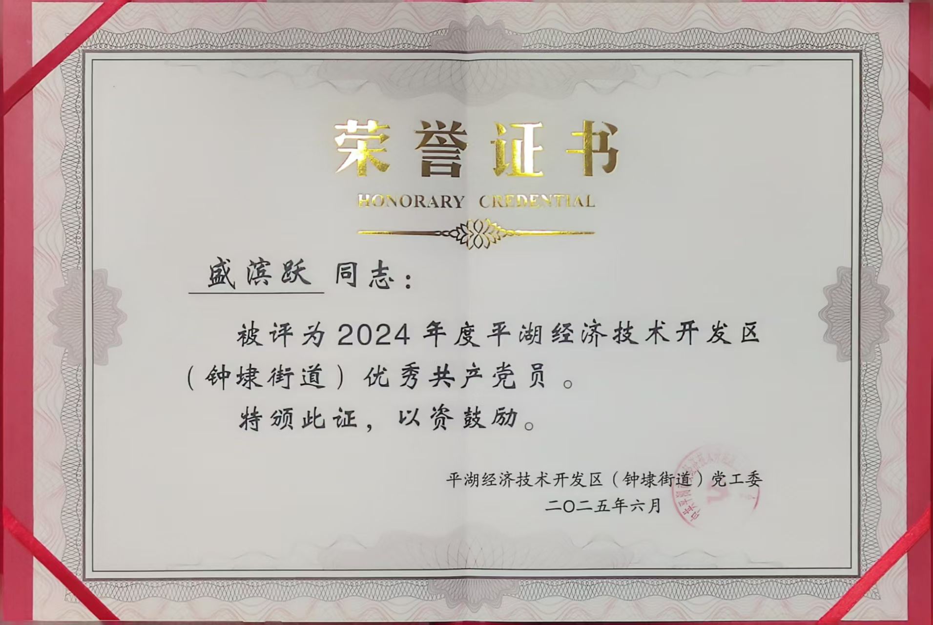 華城集團(tuán)黨委副書(shū)記陳川平榮獲“2024年度平湖經(jīng)濟(jì)技術(shù)開(kāi)發(fā)區(qū)優(yōu)秀黨務(wù)工作者”稱(chēng)號(hào)。